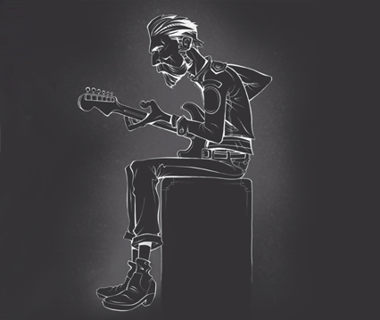 This production features a nylon-string "Sola" guitar as the lead instrument, and a custom Valley Arts electric guitar in a supporting role.
